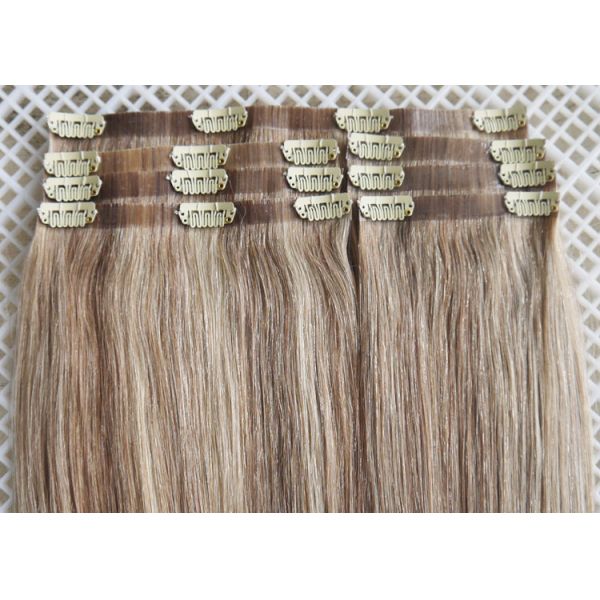 Invisible Seamless Clip In Hair Extensions Remy Human Hair Could Be Flat Ironed / Restyle Images |